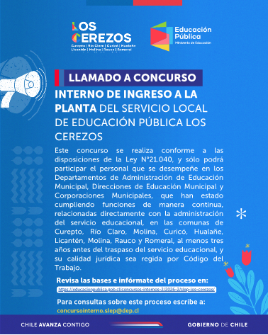 2026-01-20 – Servicio Local de Educación Pública Los Cerezos llama a Concurso Interno de ingreso a la Planta del Servicio